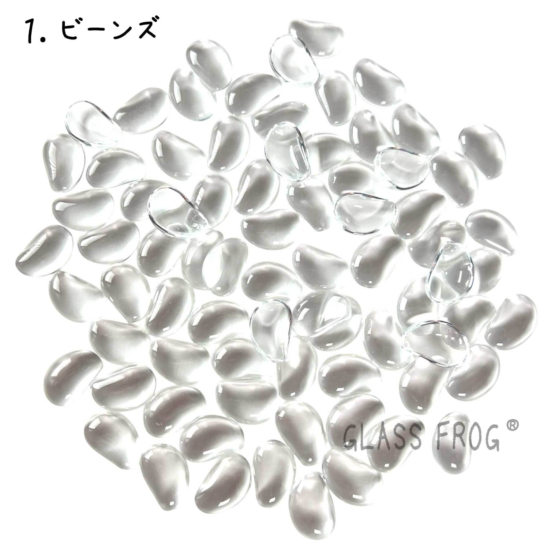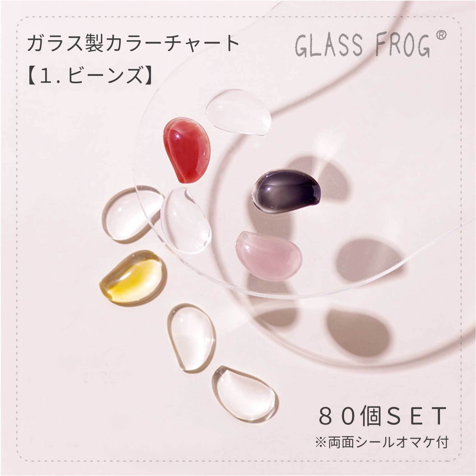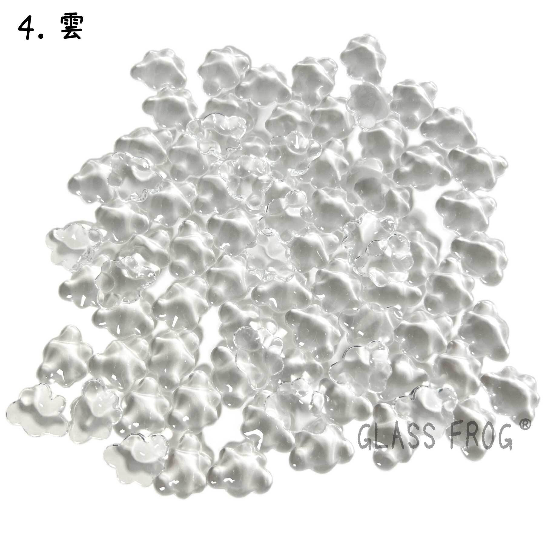 ●ガラス製のカボション80個セットです。丸型の両面テープ100個付なのですぐに使えて便利です。ビーンズ・ネコ・フラワー・雲の可愛い形のカボションです。