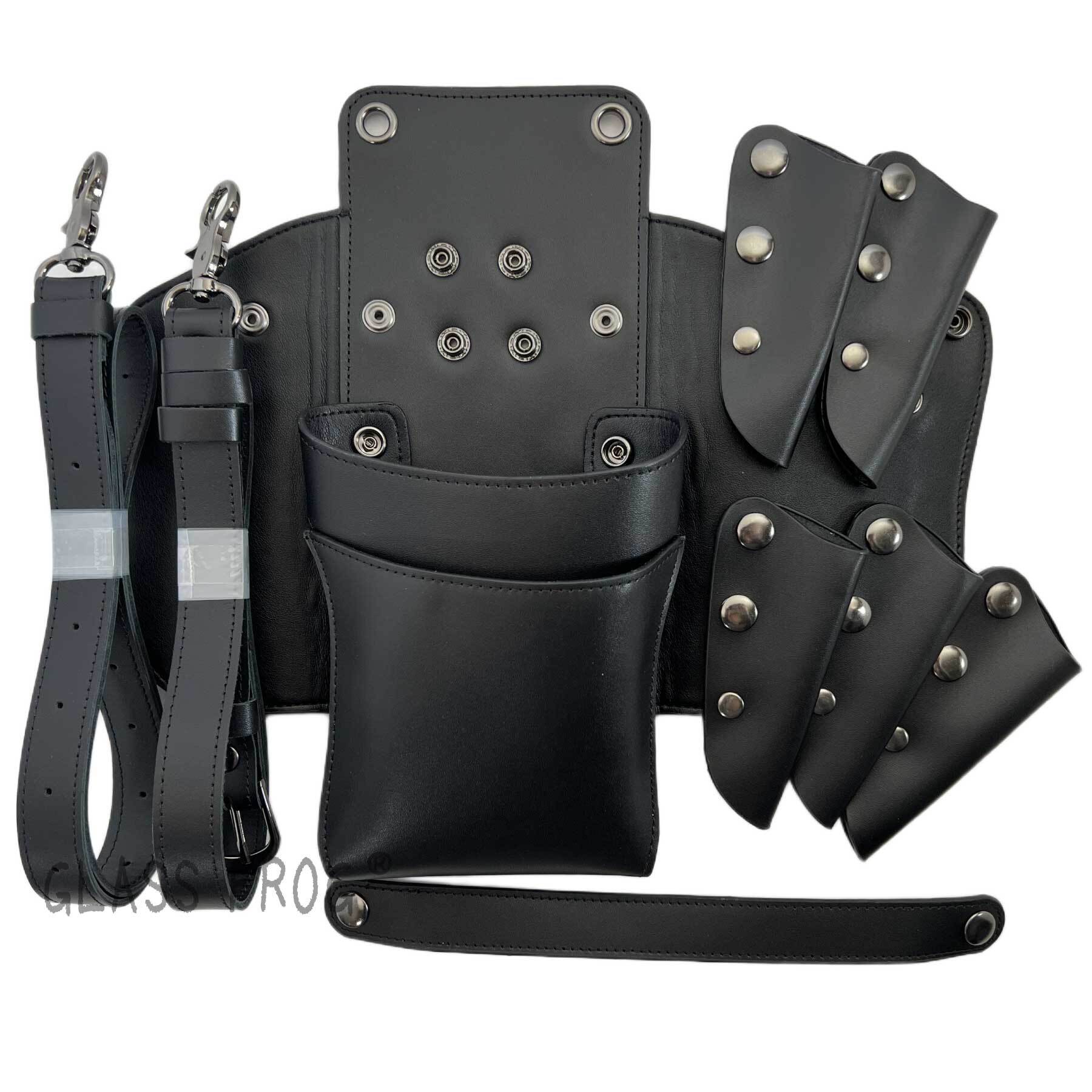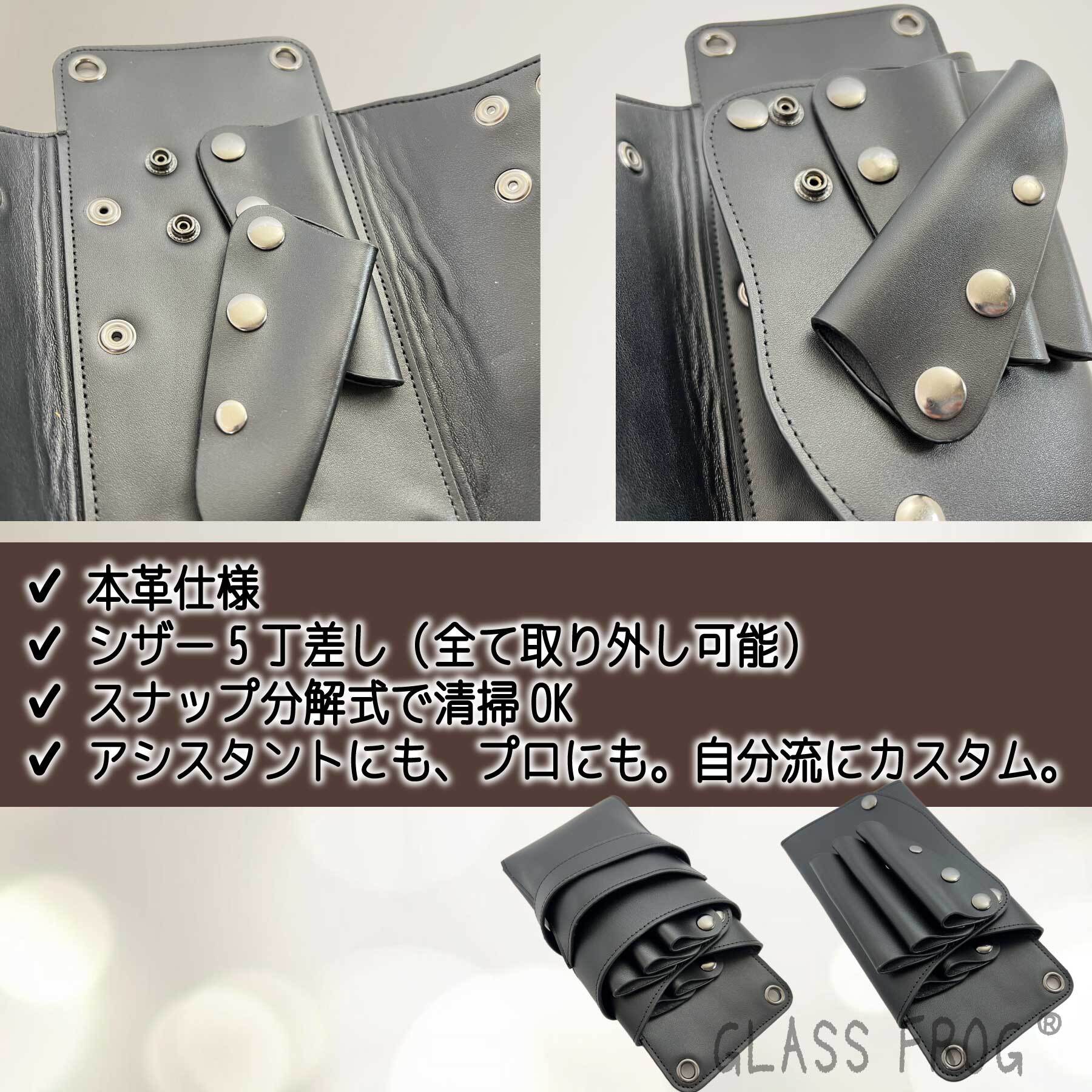本革 シザーケース ブラック 5丁挿し シザー入れ取り外し可能 美容師 トリマー