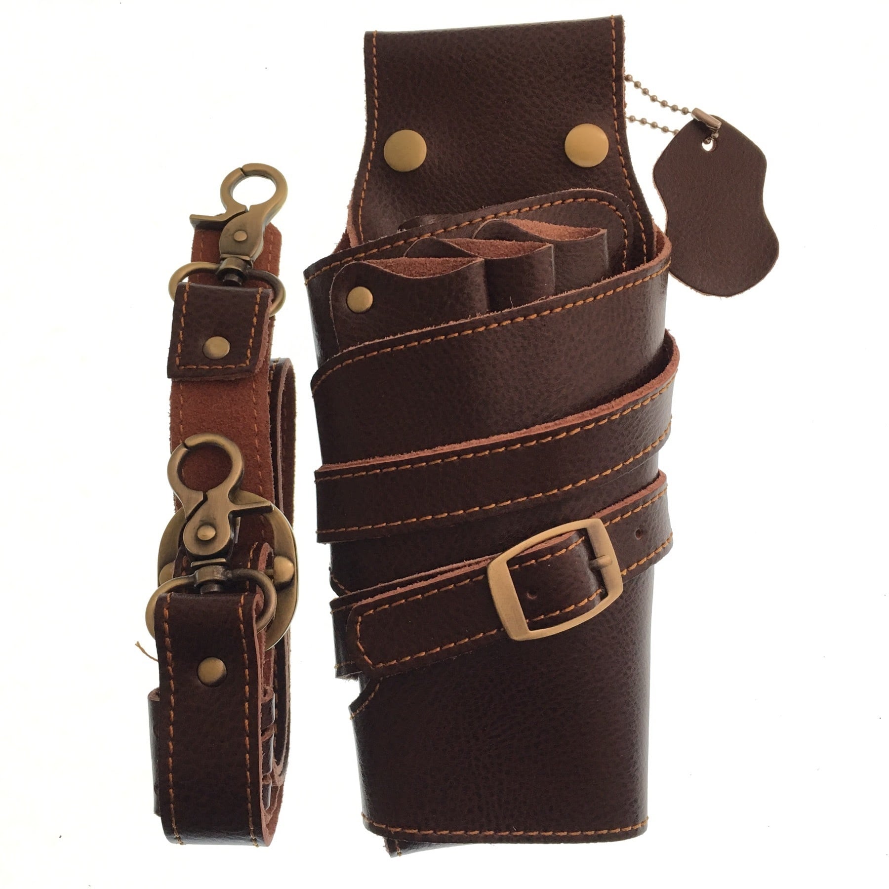 シザーケース ブラウニー 本革 牛革 本革ベルト付 ハサミ5丁 美容師 トリマー 6Colors
