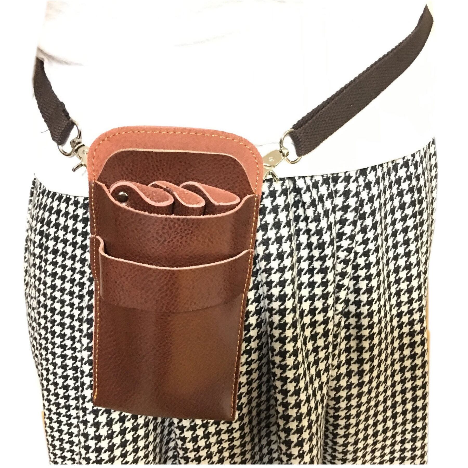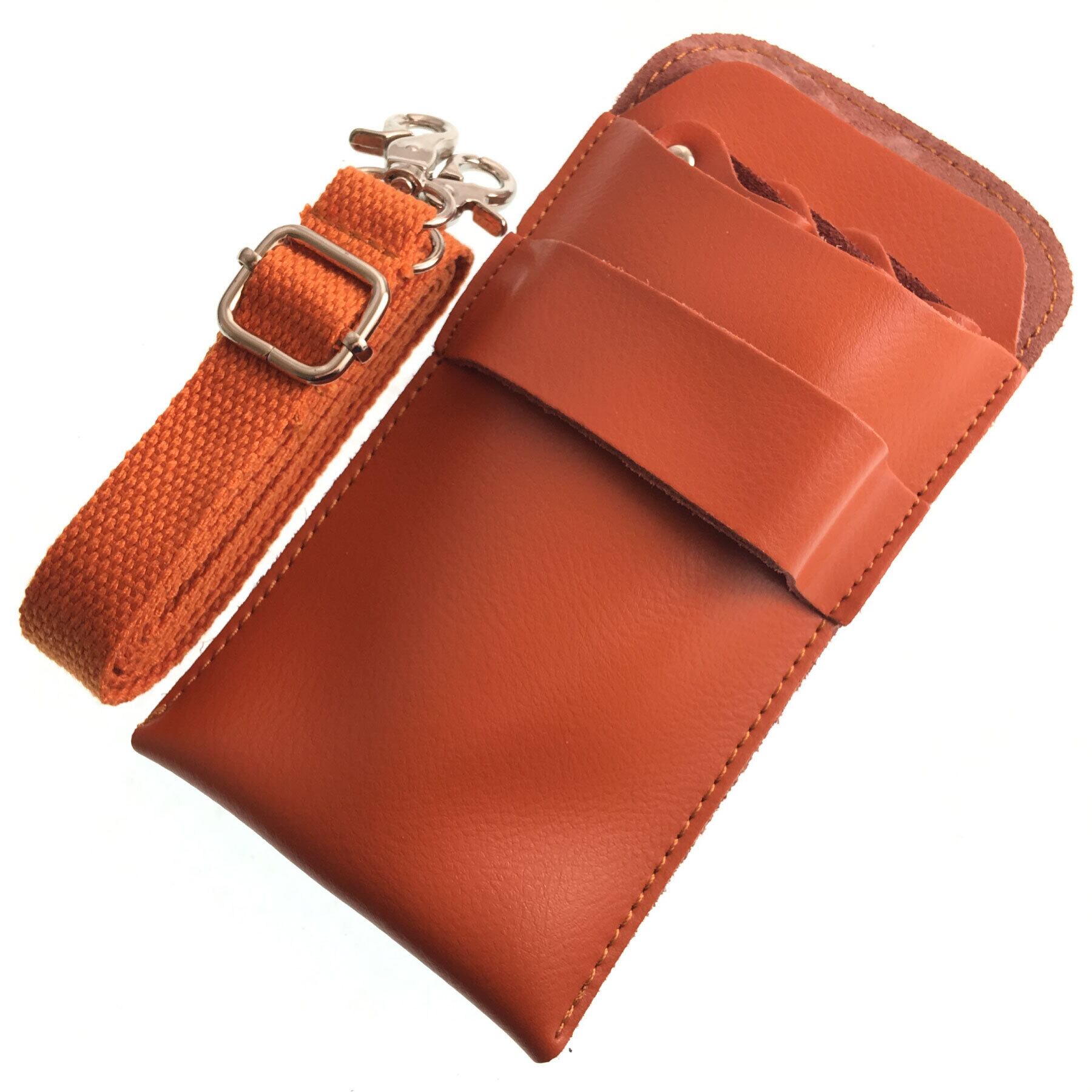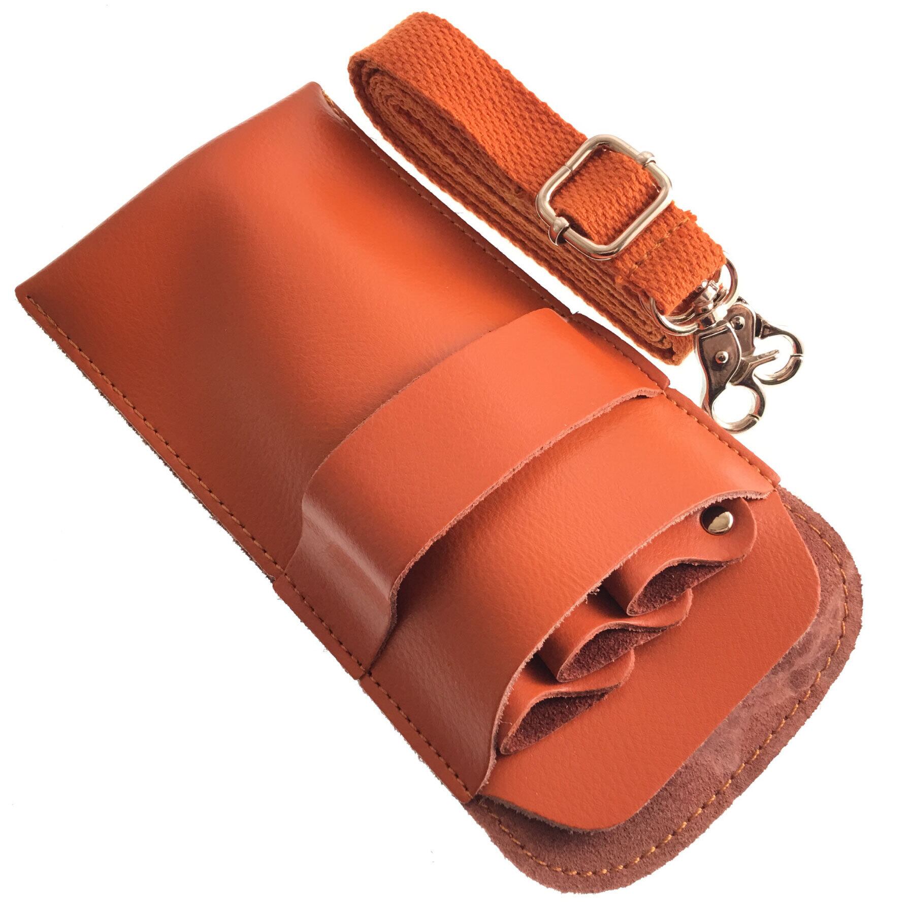 ■シザーケース ダークオレンジ 本革 牛革 ハサミ3丁収納 美容師 トリマー 新品